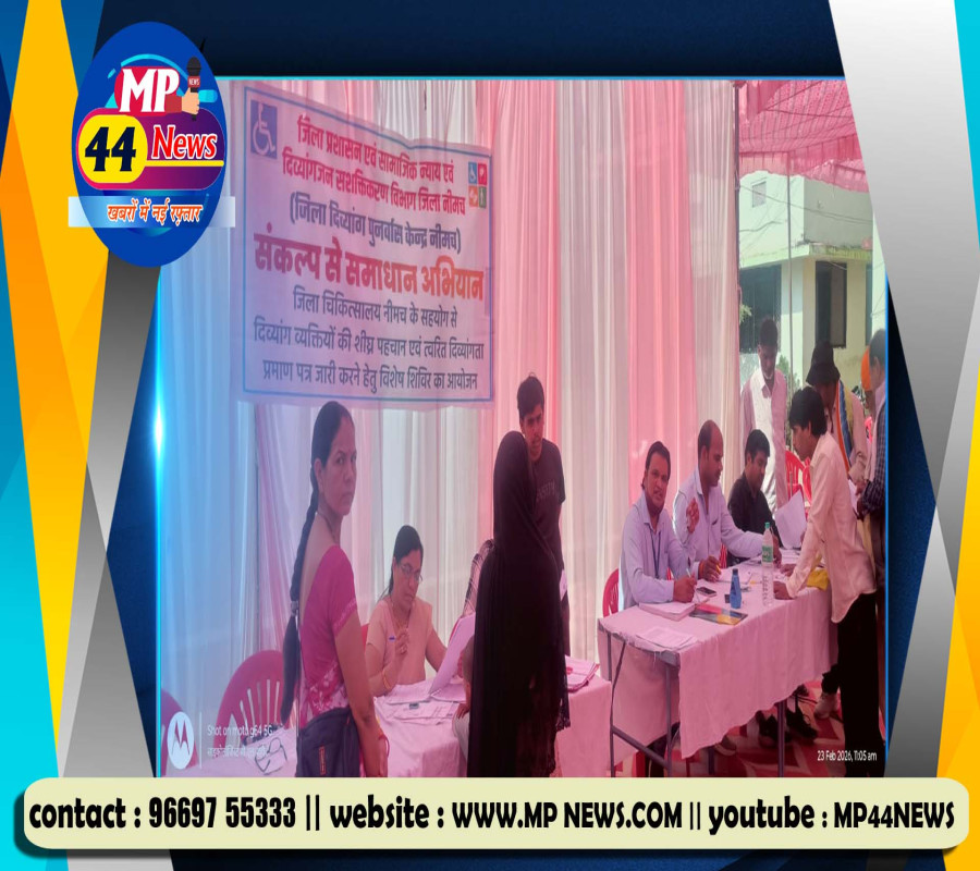 *KHABAR : नीमच में संकल्प से समाधान अभियान के तहत दिव्यांगता पहचान शिविर, 129 दिव्यांगजन लाभान्वित, पढ़े MP44 NEWS की खबर*